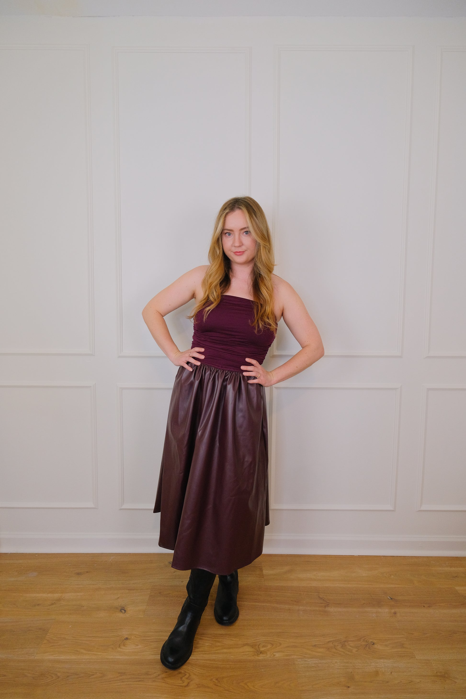 Le Bordeaux Vegan Leather Midi Tube Dress